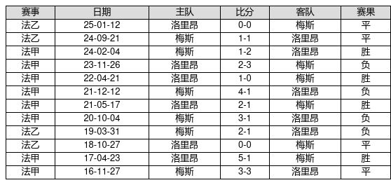 洛里昂 VS 梅斯两队近10年的交战次数为12场,洛里昂4胜4平4负,赢球概率为33.3%,平局概率为33.3%,输球概率为33.3%。
