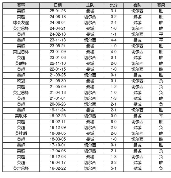 曼城 VS 切尔西两队近10年的交战次数为28场,曼城17胜3平8负,赢球概率为60.7%,平局概率为10.7%,输球概率为28.6%。