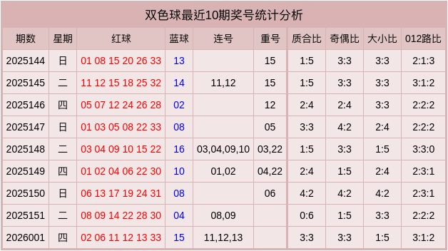 012路比分析:上期红球开出012路比为3:1:2,其中0路阐扬较热,最近10期红球012路比为25:19:16,本期012路比参考1:3:2。