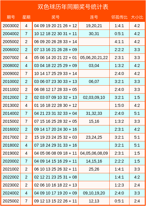 双色球积年同时数据统计表