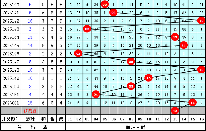 蓝球号码:最近9期隔离开出蓝球号码13、14、02、08、16、10、08、04、15,蓝球号码012路个数比为1:4:4,其中0路蓝球开出最少,本期不错毁灭,参考蓝球01、04、13、16。