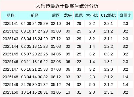 大小比分析:上期前区奖号大小比为2:3,最近10期前区大小比为25:25,大极少码均匀下号,本期注视大数热出,参考大小比4:1。