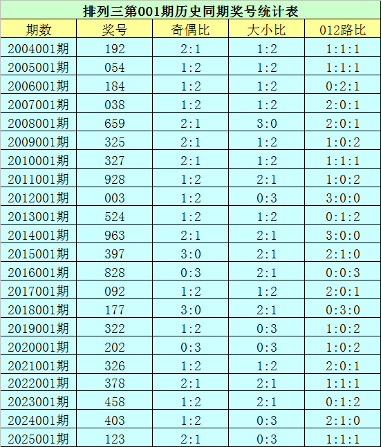 摆列三第2026001期开奖日历:2026年1月1日,历史上第001期已开出了22次奖号,积年同时号码区分为:192、054、184、038、659、325、327、928、003、524、963、397、828、092、177、322、202、326、378、458、403、123。