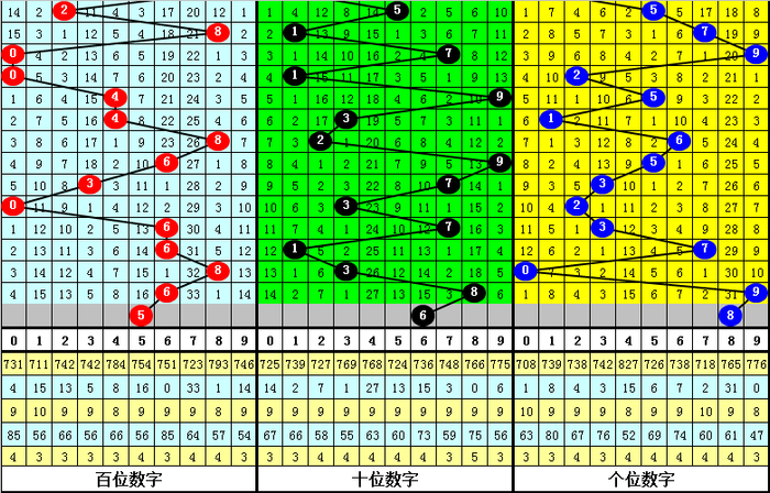 十位:偶数近期走势相对疲软,上期回补之后,本期看好偶数不竭回补;另外,该位0路和1路号码在最近20期奖号中走势较热,2路号码阐扬相对较冷,本期该位废弃2路号码,参考号码6。