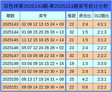 上期总结:双色球第2025151期总结:红球08、09、14、22、28、30 + 蓝球04。
