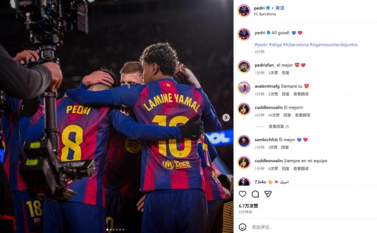 他也在赛后通过社媒晒出全队相拥庆祝的照片,并配文:“一切完美!”