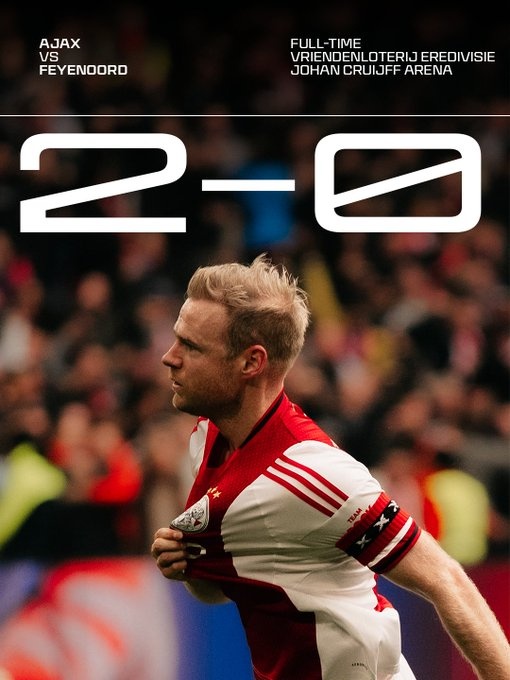 下半场补时阶段,米卡·霍茨助攻莫吉奥破门,阿贾克斯最终主场2-0击败对手。