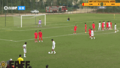 第27分钟,中国香港队任意球直接吊门打高。↓