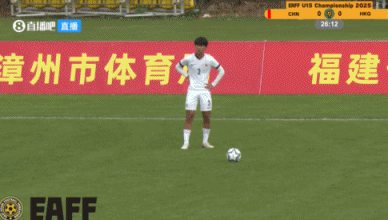 第7分钟,胥中奇禁区外围扣过防守球员后完成一脚远射,中国香港队门将将球抱住。↓
