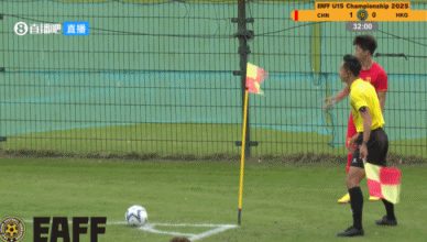 第16分钟,中国香港队任意球开至禁区,陈城云脱手,中国香港队连续形成攻门,随后主裁响哨示意有越位。↓